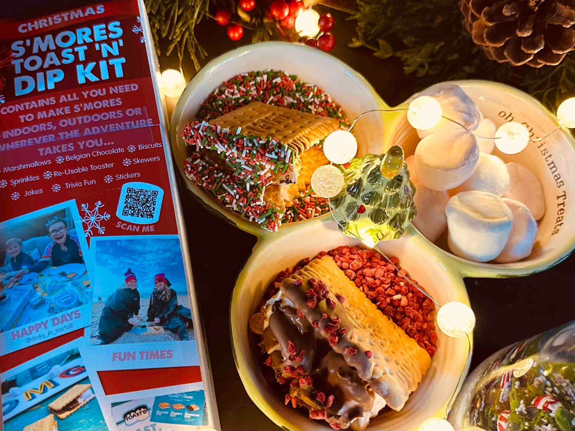 Our Christmas S'mores Kit is a limited edition Toast 'N' Dip Kit based on our Best Selling Large S'mores Gifting Kit BUT with a Festive Twist!