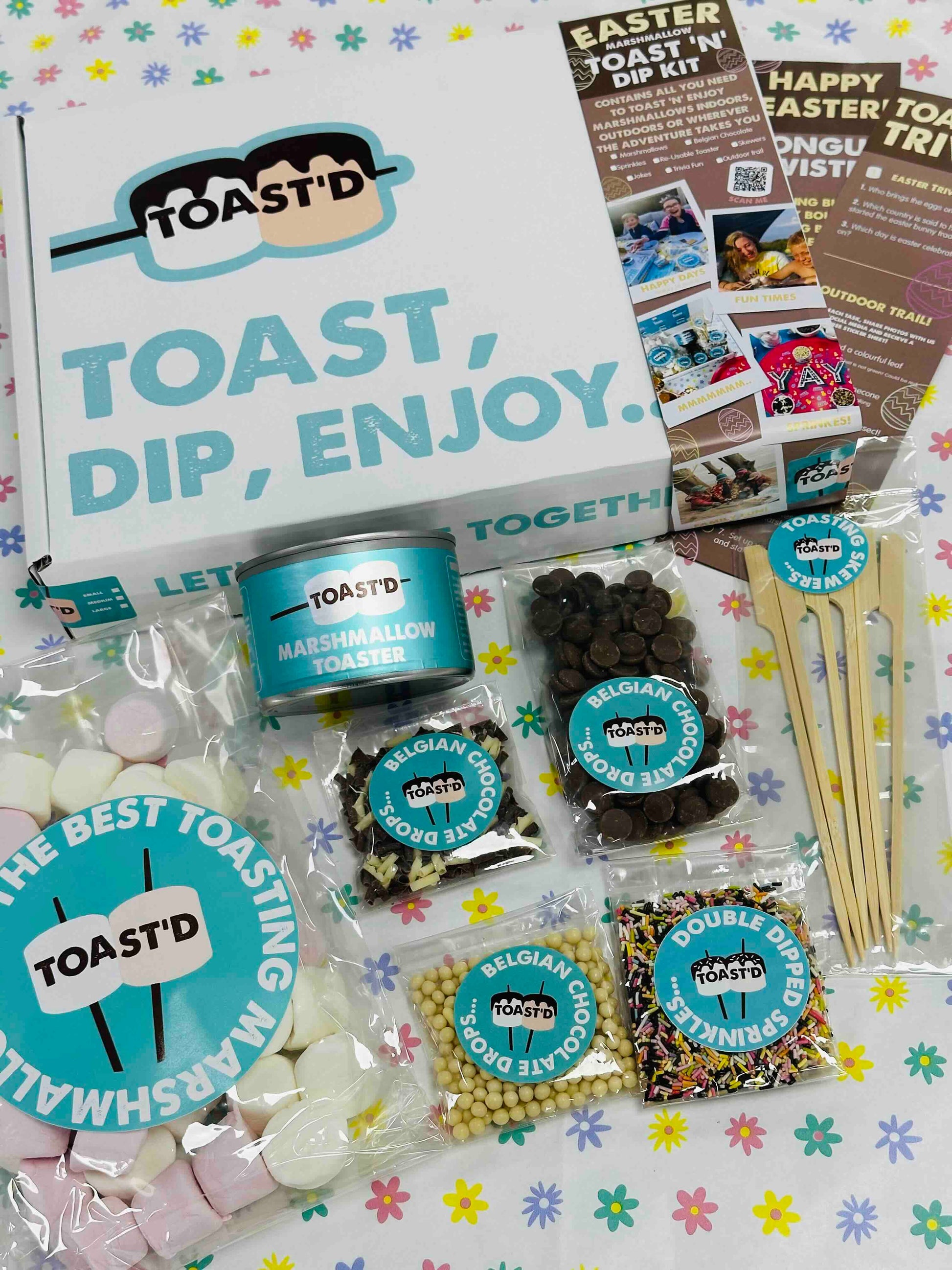 Our New Easter edition Original Kit combines our best selling Toast 'N' Dip kit with a 'Feast' of decorative treats including; Belgian Chocolate Curls, Belgian Choc Coated Crispy Balls & Sprinkles to create and decorate those Marshmallow masterpieces that even the Easter Bunny would be proud of!