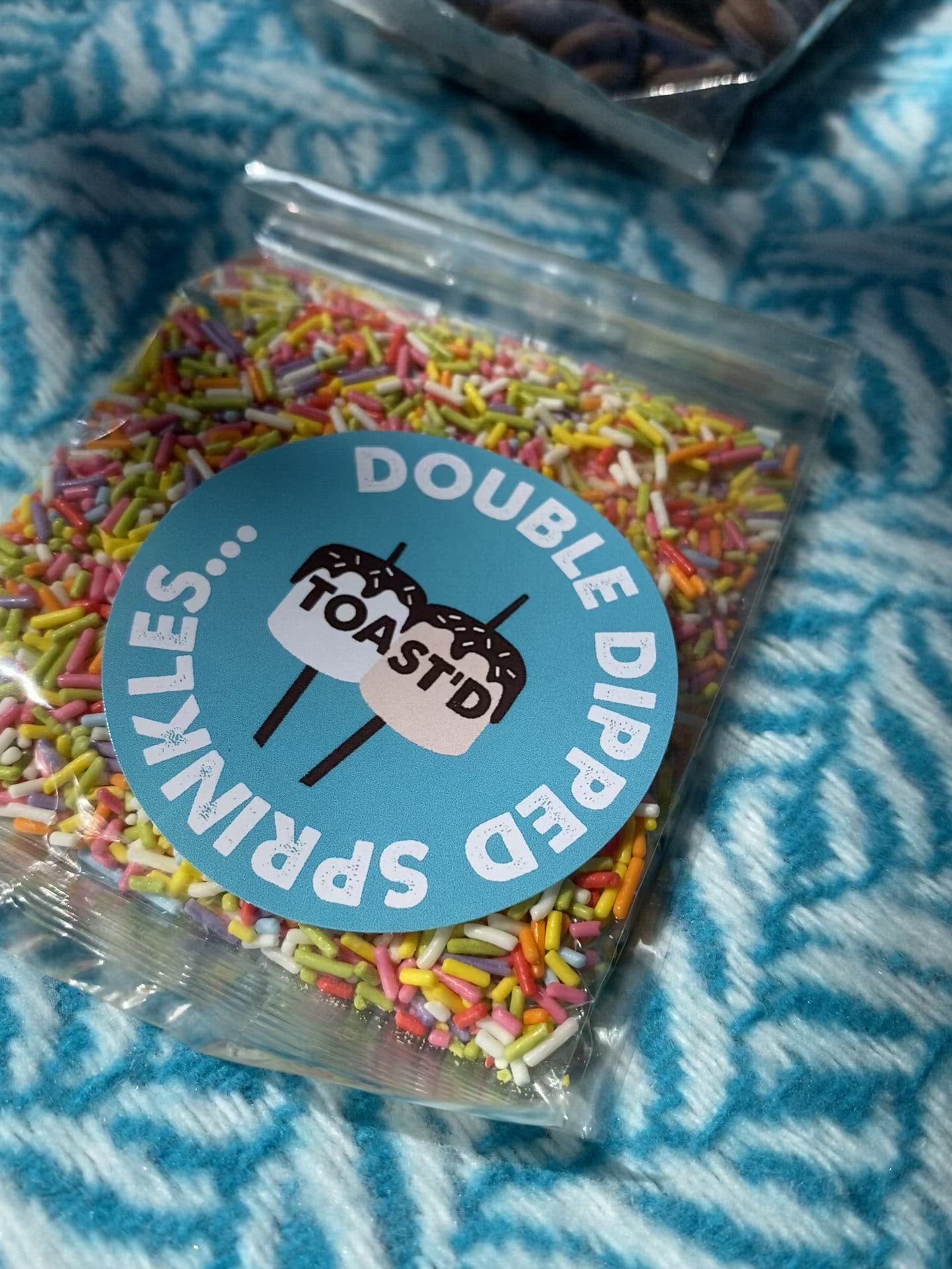 The sound of the crackling flames and that unique sweet smell of toasting marshmallows. Oohhh what could be better? How about dipping those marshmallows in the best Belgian chocolate and then decorating with sprinkles...mmmm